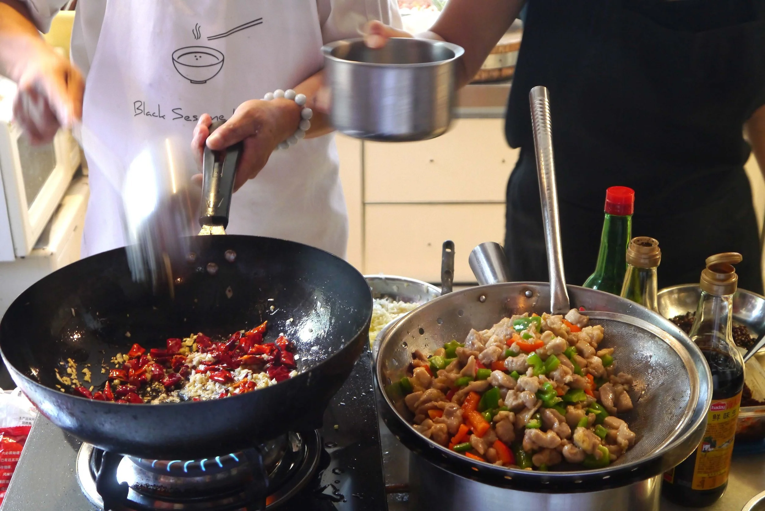I went to a cooking class a few years ago in Beijing called Sesame Kitchen that was located in a tiny kitchen deep in one of the authentic hutongs in the city. The original hutongs are neighborhoods in narrow streets or alleys, densely packed with modest courtyard homes called siheyuan. These days you’ll often see a “renovated” hutong where they’ve cleared out the old houses, paved and widened the streets, and generally Disneyfied the neighborhood with tourist shops. Not quite the same charm as the originals.